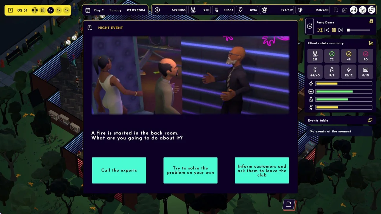 Довольные гости - залог успеха! Удовлетворите их потребности - от элегантных напитков до энергичных танцевальных вибраций. Поддерживайте атмосферу, решайте неожиданные проблемы, такие как пролитые напитки или сломанные унитазы, и сделайте свой клуб главной достопримечательностью города!