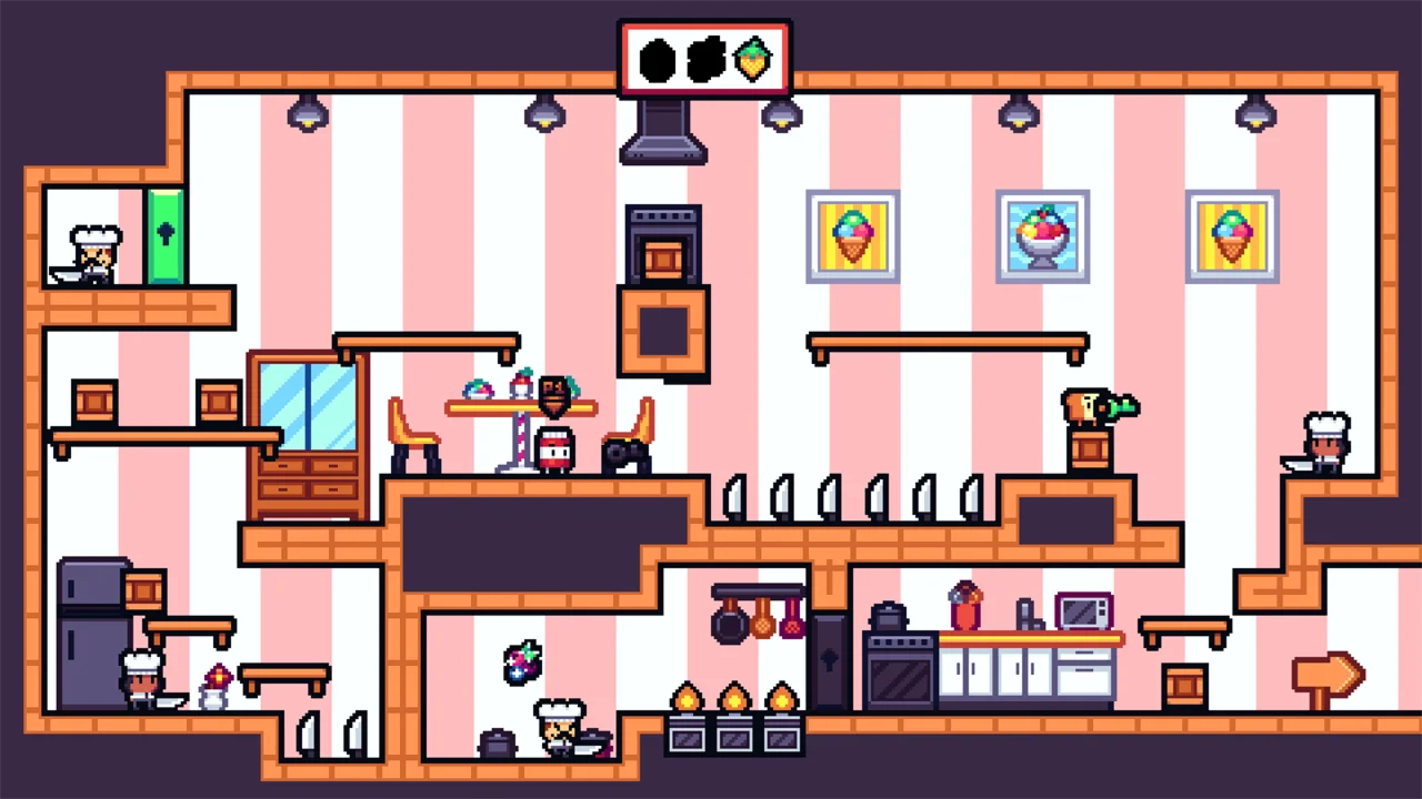 Преодолевайте враждебных поваров, горячие и острые кулинарные ловушки, и исследуйте 3 кухонных королевства, наполненных сумасшедшими кулинарными испытаниями!