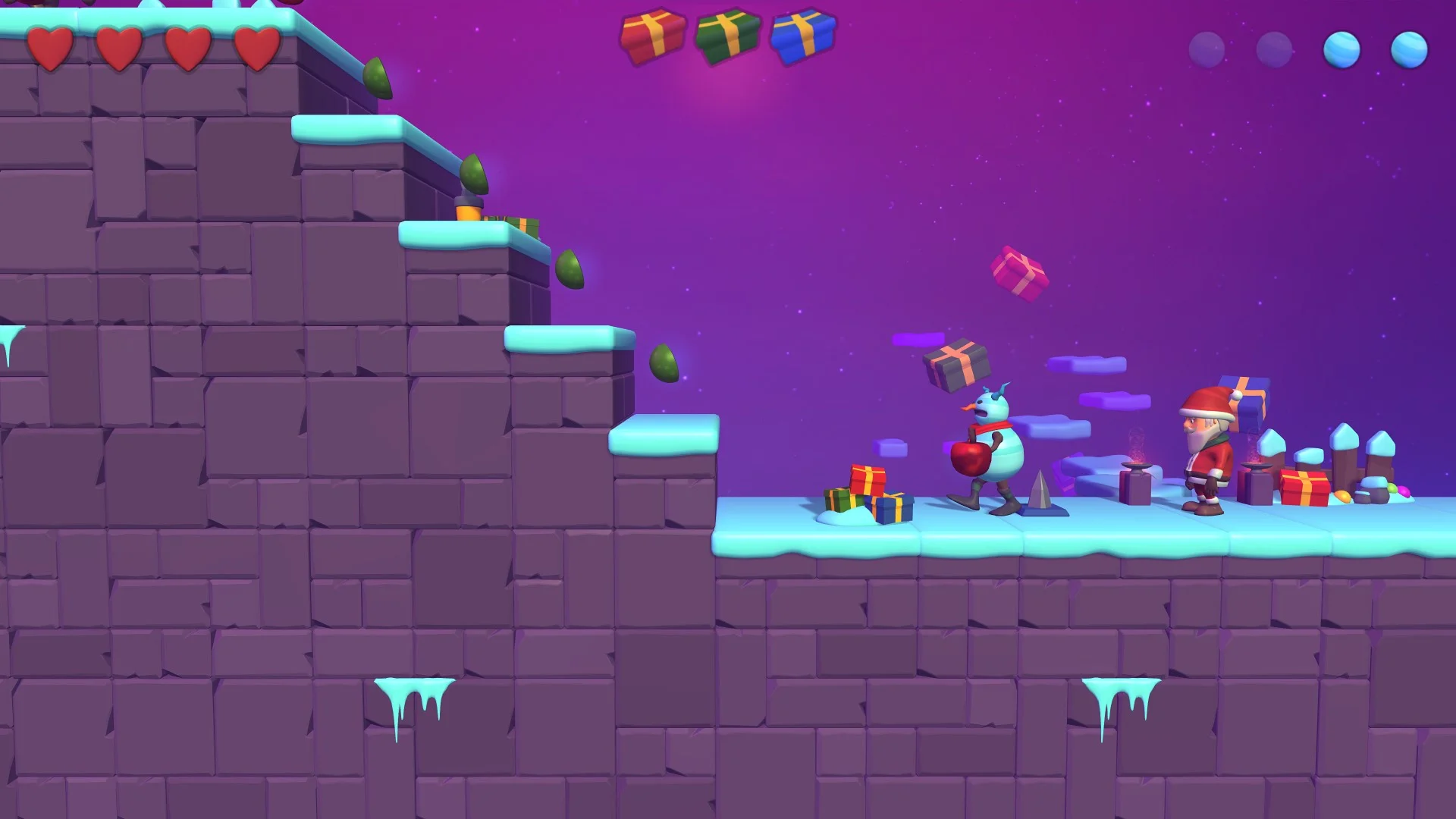 Цель — найти три потерянных рождественских подарка и перейти на следующий уровень, собирая предметы.