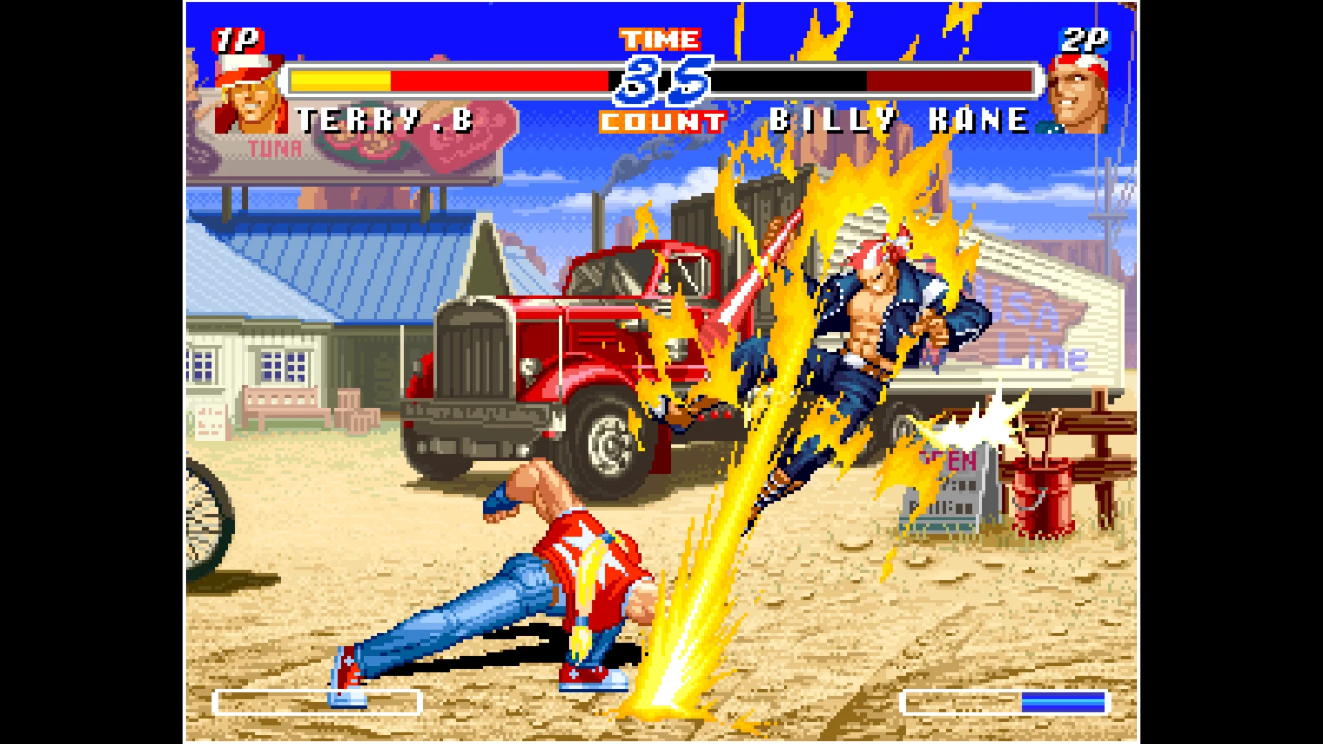 REAL BOUT FATAL FURY 2 is a fighting game released by SNK in 1998. It is the 7th title in the Fatal Fury series. New elements have been added on top of refining the previous systems. This entry adds Rick Strowd and Li Xiangfei as playable characters, and Geese Howard makes his return as well!