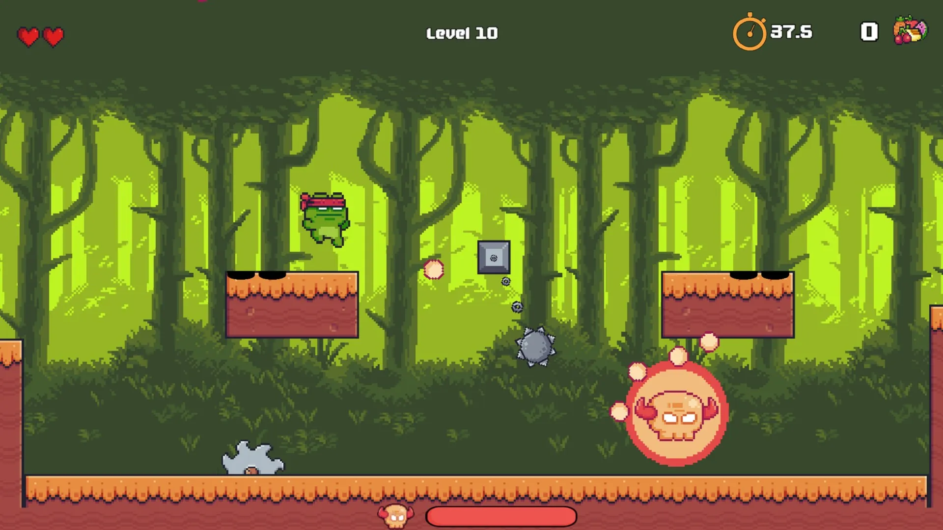Прыгай, уклоняйся и проходи смертельно опасные полосы препятствий в Frog Hero DX — прими вызов; Frog Hero DX — динамичный платформер с характером.