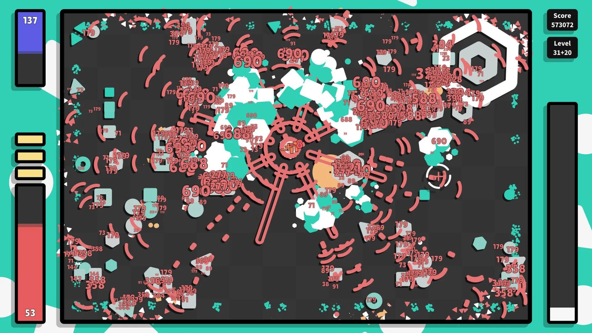 Geometry Arena 2 distills RPG depth and Roguelite elements into a unique loop of [ Meta-Progression + Endless Challenges ]. Mix and match Weapons, Bodies, Modules, and Pets to craft your game-breaking builds! Minimalist lines, vibrant colors!