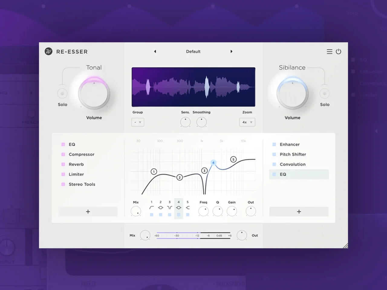 Плагин подходит для обработки голоса в песнях или диалогов, делает звучание естественным и выразительным — от лёгкого смягчения до творческого улучшения деталей.