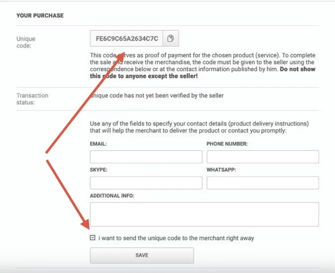 Внимание! После оплаты вы получите уникальный код подтверждения оплаты. Для завершения сделки выполните следующие действия: