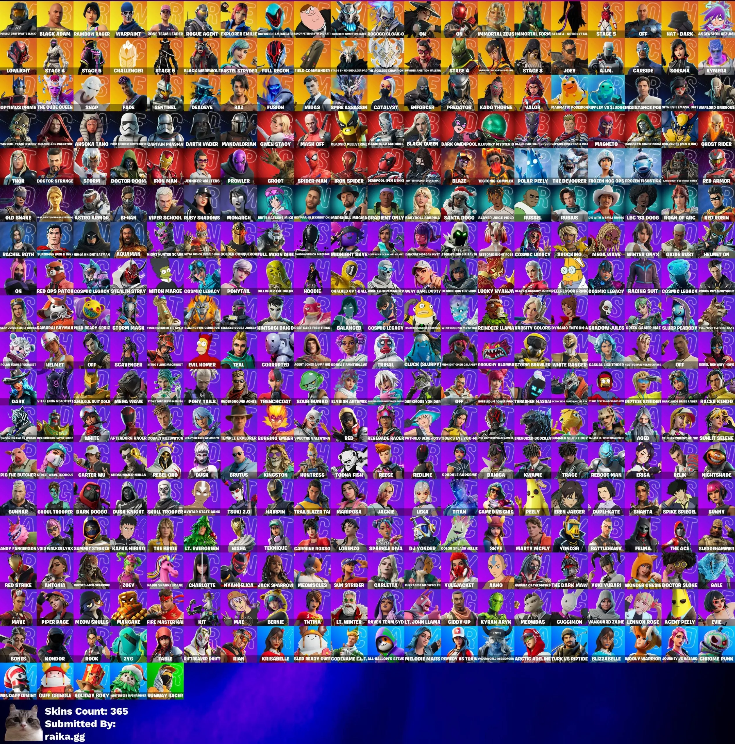 • После покупки вы получаете аккаунт Fortnite с 365 скинами. Данные предоставляются от игры + данные от почты. На аккаунте будет задержка на смену почты.