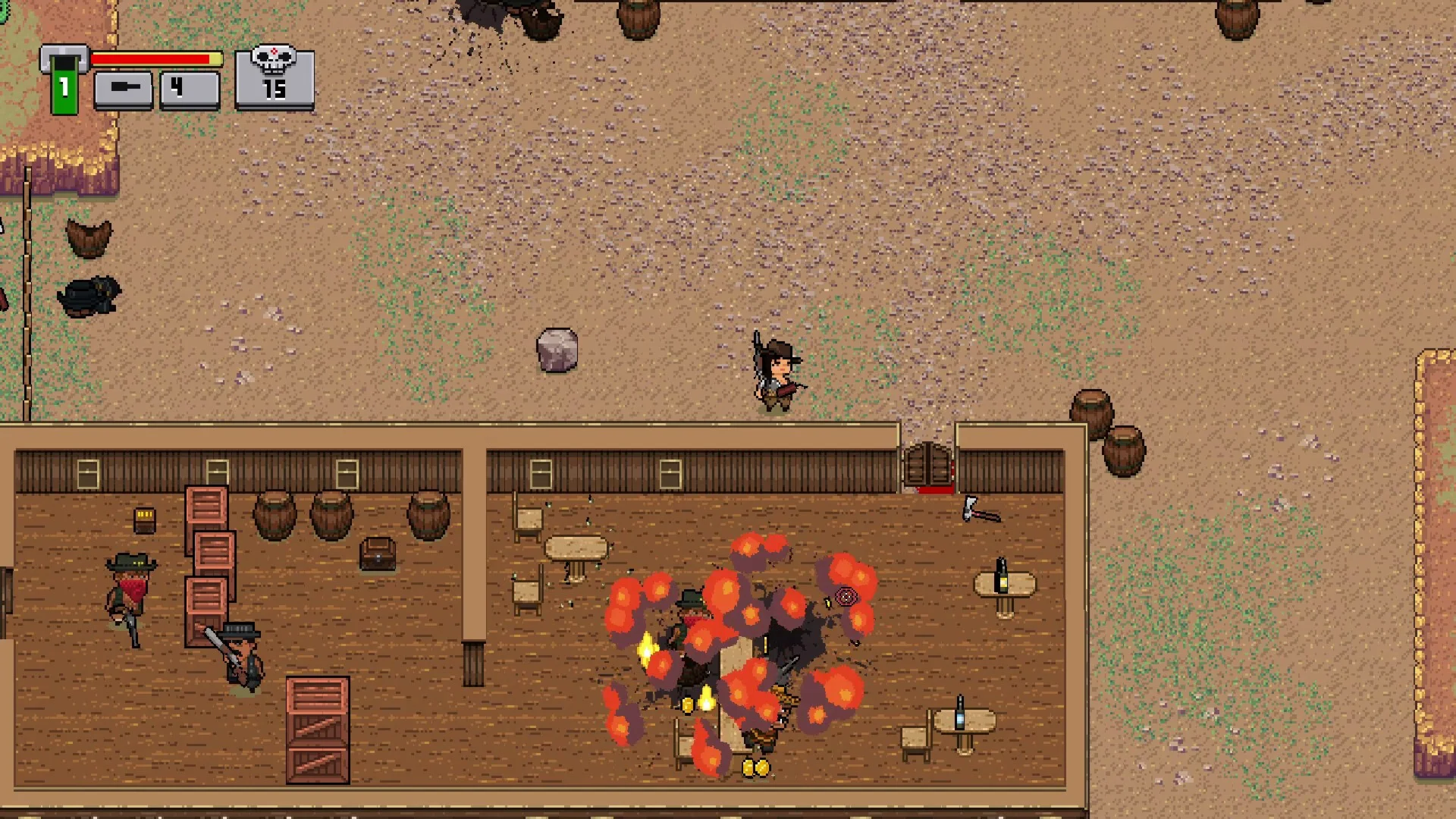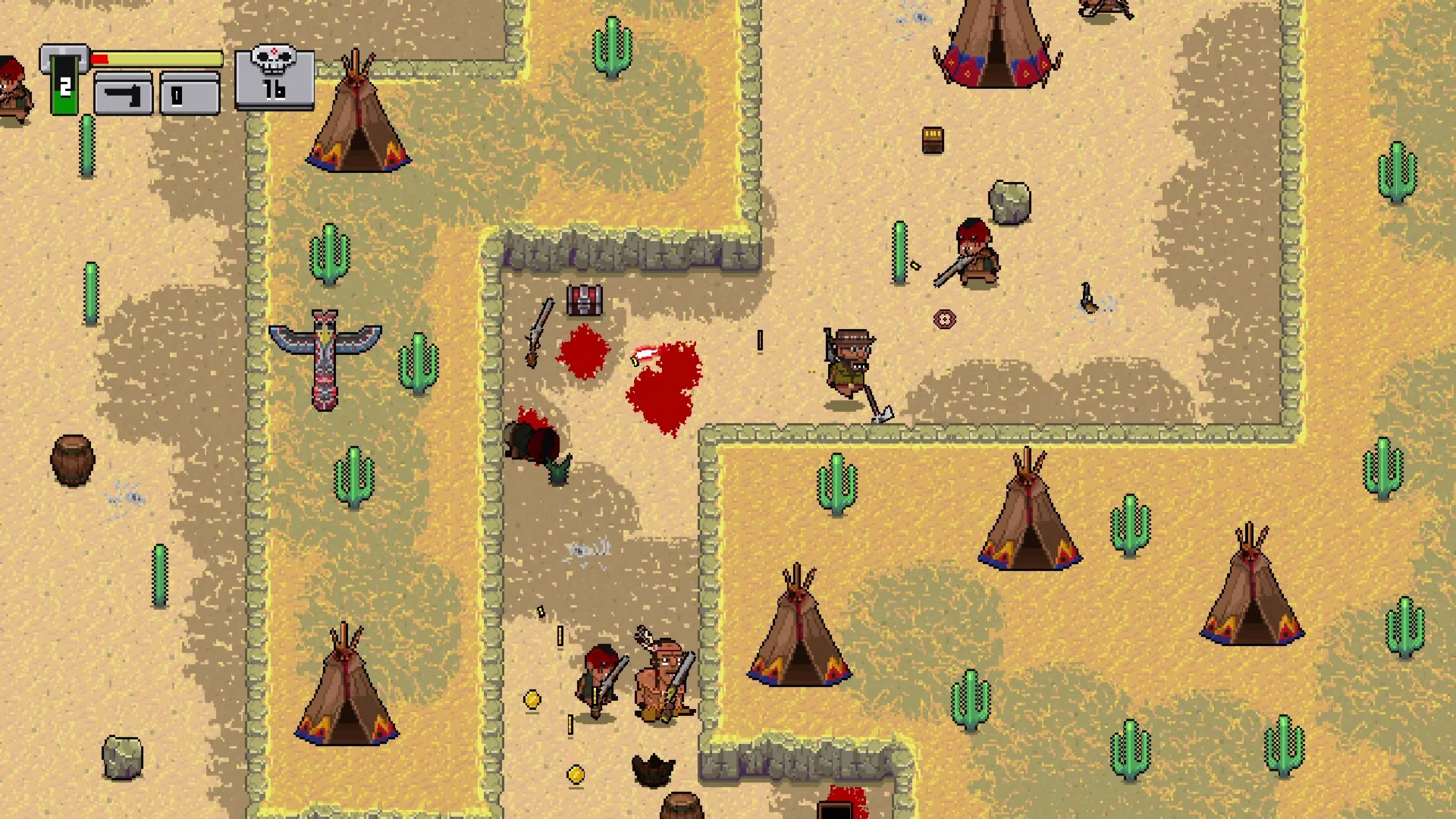 Пора бы вам выбрать героя и прорваться сквозь толпы убийственных врагов рассерженных индейцев бандитов и даже пришельцев с их футуристическими плазменными пушками От вас потребуется выжить во время особо трудных уровней а заодно собрать пожитки с тел мертвых врагов Руки явно придется запачкать чтобы раскрыть секреты Dead Dust вам понадобится общаться с барменами Они продадут вам полезное оборудование с помощью которого Шланго подчинятся любые проблемы и он сможет спасти похищенную даму