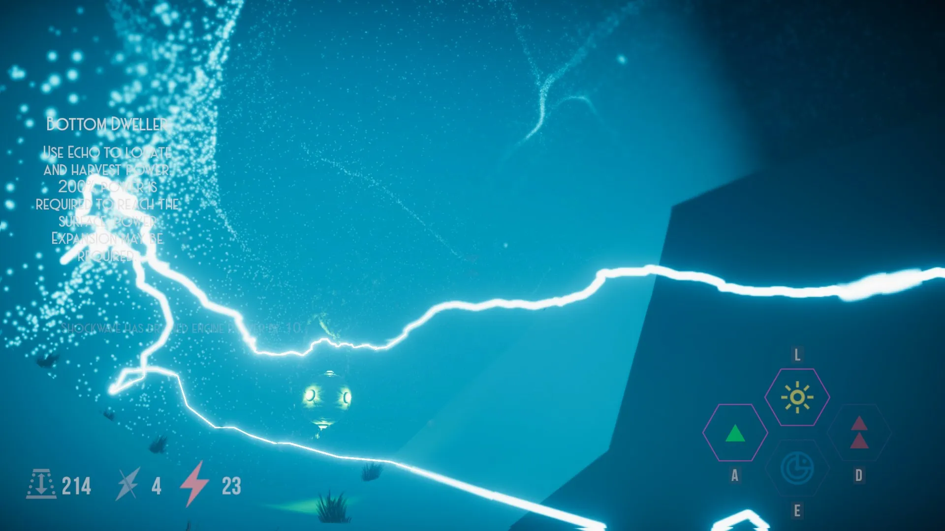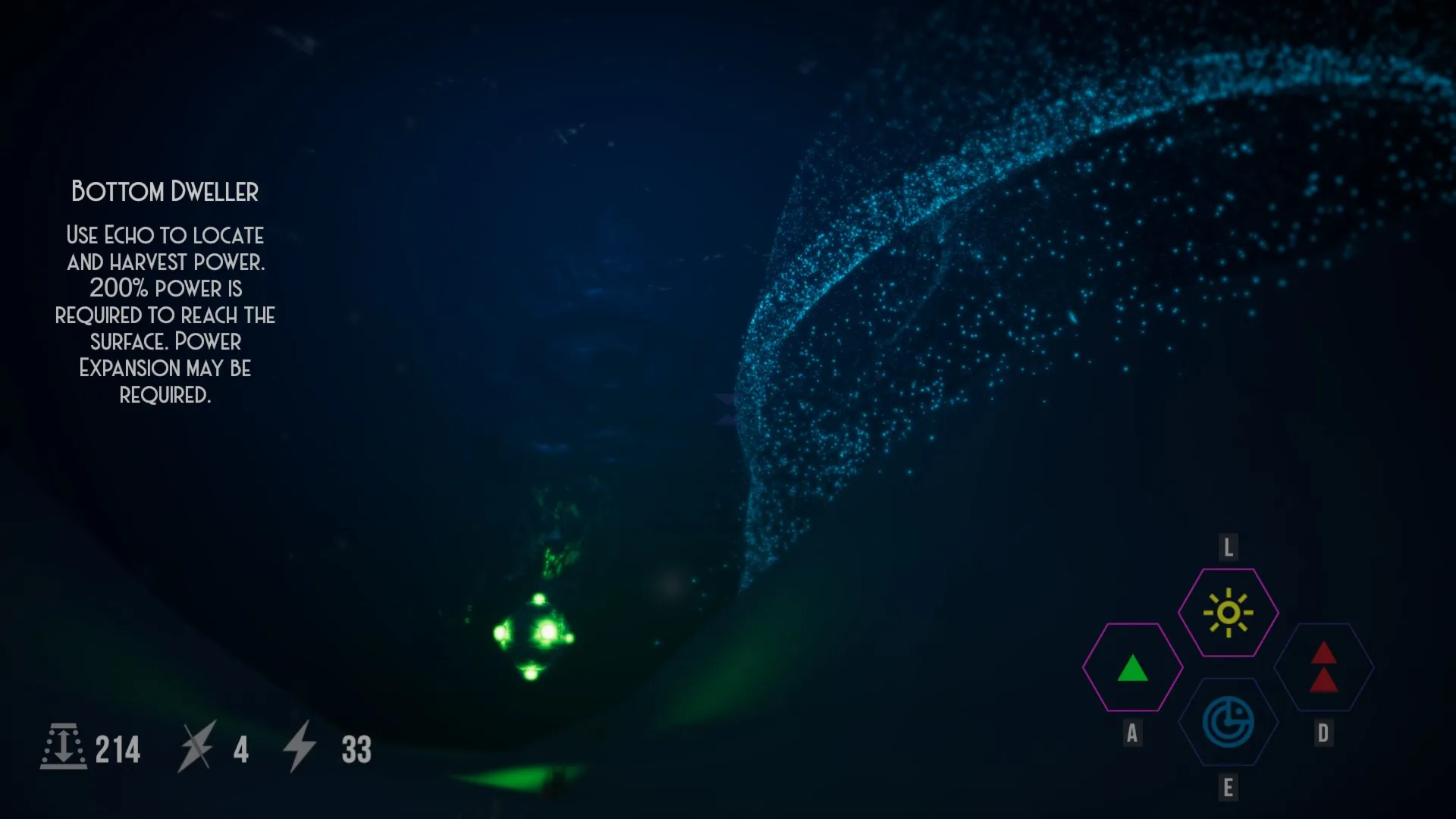 Игра представляет собой подводный симулятор от первого лица, демонстрирующий обширное океанское дно, которое нужно исследовать и где нужно выживать. Ваш летательный аппарат обладает четырьмя ключевыми способностями, которые помогут вам ориентироваться в этой темной местности, избегая при этом ударов метеоритов, истощающих его энергию. Поддерживайте уровень энергии выше нуля, управляя исследовательскими возможностями вашего корабля, иначе миссия провалится!