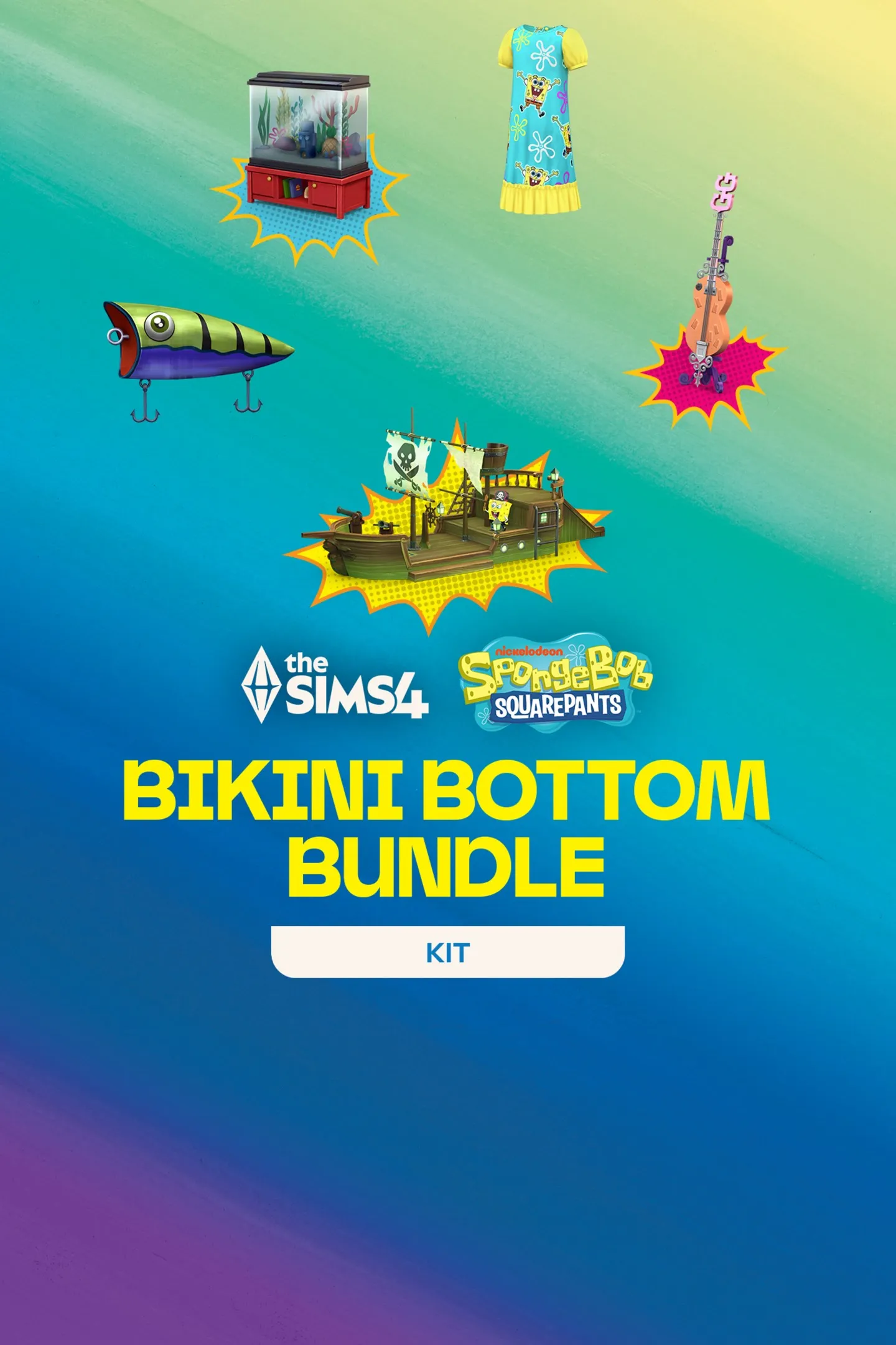Создайте легендарный дом в форме ананаса с помощью морского декора и комнаты в стиле Губки Боба с коллекцией «The Sims™ 4 Бикини Ботто컇, которая включает комплекты «The Sims™ 4 В гостях у Губки Боба» и «The Sims™ 4 Детская в стиле Губки Боба». Коллекция включает три эксклюзивных предмета: гитару «Гуфи Губер», аквариум «Ракушечная улица» и гимнастический комплекс «Летучий голландец». Предложение действительно до 3 марта 2026 года.