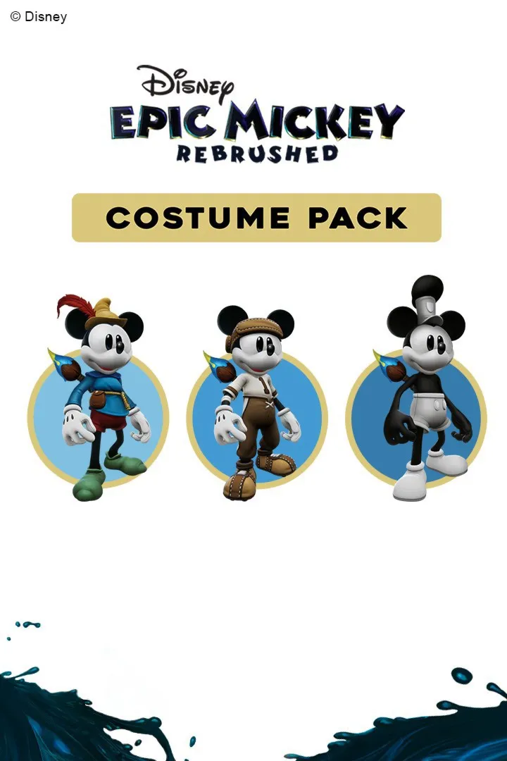 Official Disney Epic Mickey: Rebrushed Costume Pack — официальный набор костюмов, включающий 3 ностальгических костюма Mickey Mouse, чтобы примерить и начать приключения по фантастическому миру Wasteland!
