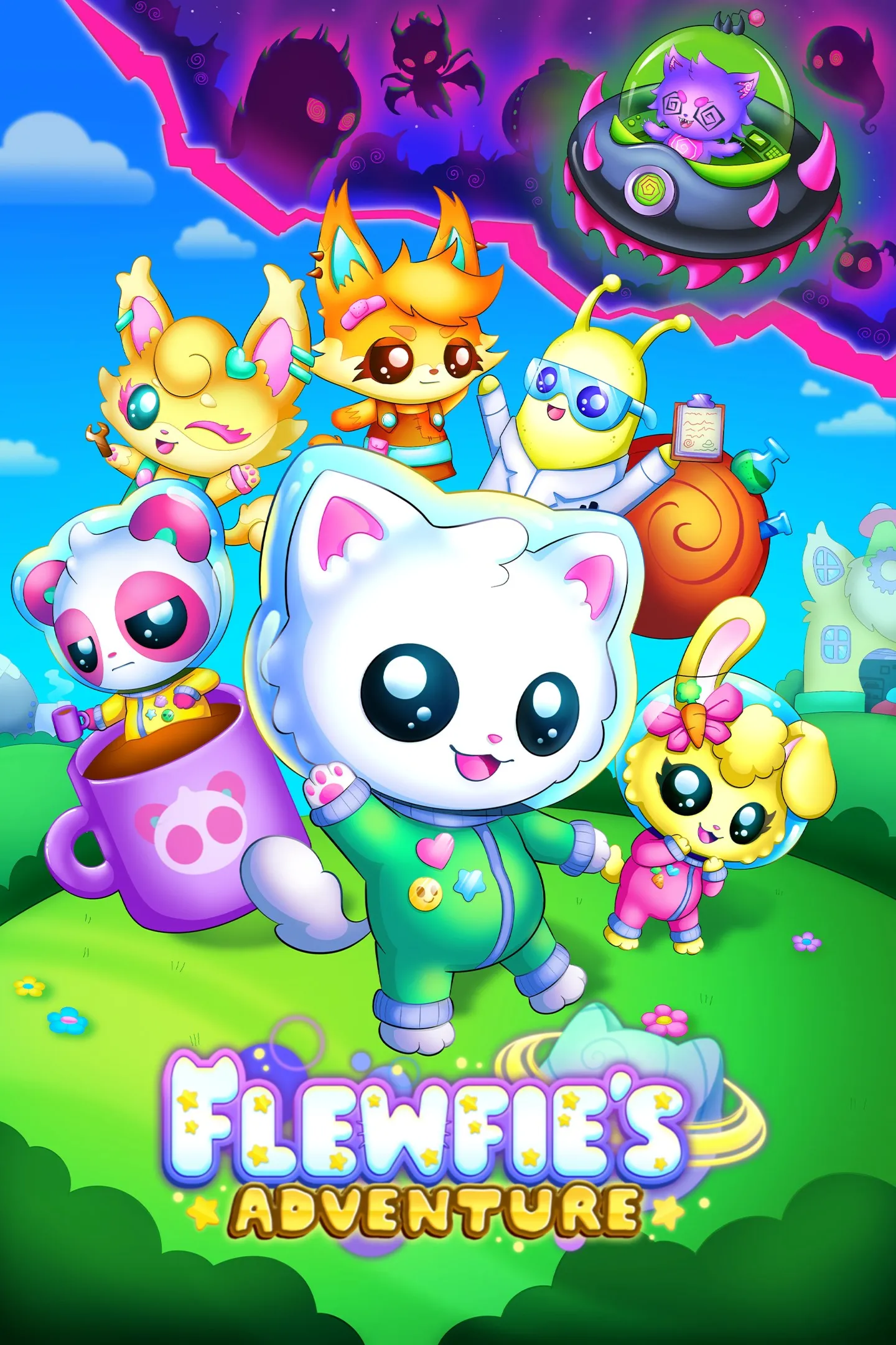 Присоединяйтесь к **Flewfie** в этом эпическом приключении! Летайте через липкие **Caramel Coves**, мерцающие сцены **Crystal Plains** и пробирайтесь через мутные глубины **Abandosphere** — и исследуйте каждый мир, чтобы открыть множество квестов на вашем пути! С помощью друзей **Scientist Snail**, **Bunn Bunn** и **Pinky Panda** сможете ли вы положить конец хаосу и остановить **Uzzu**?