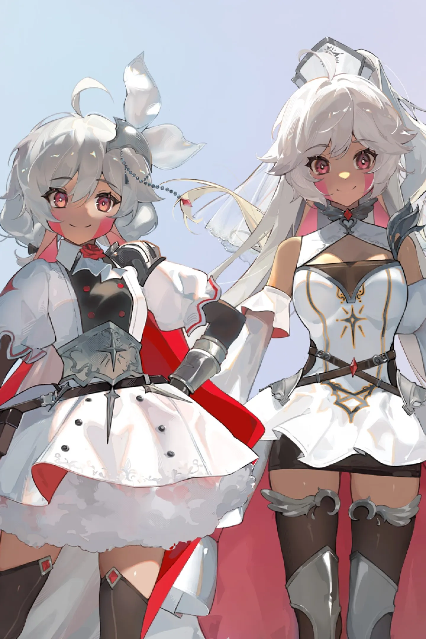 Легкая боевая одежда для фехтования, состоящая из серебряных доспехов и плаща с красными акцентами.