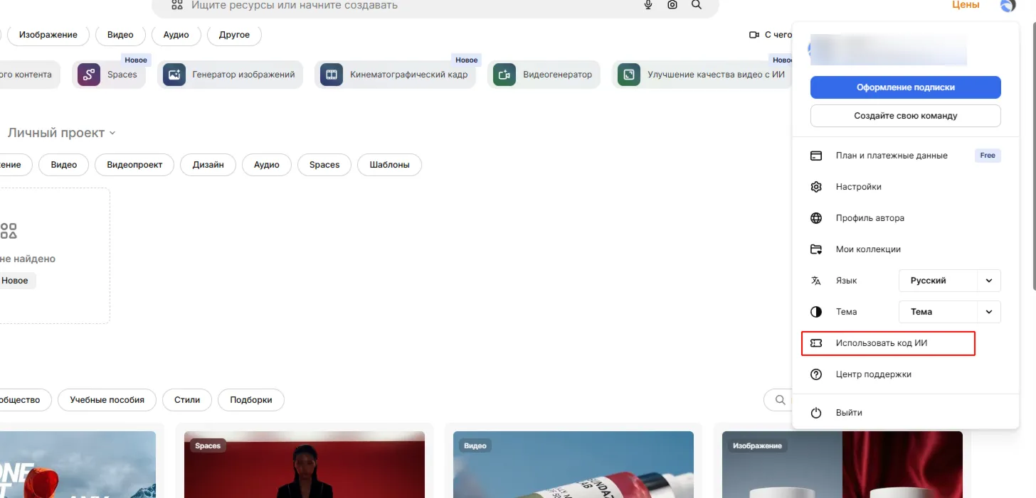 Код ИИ пополнения баланса AI Credits на Freepik.