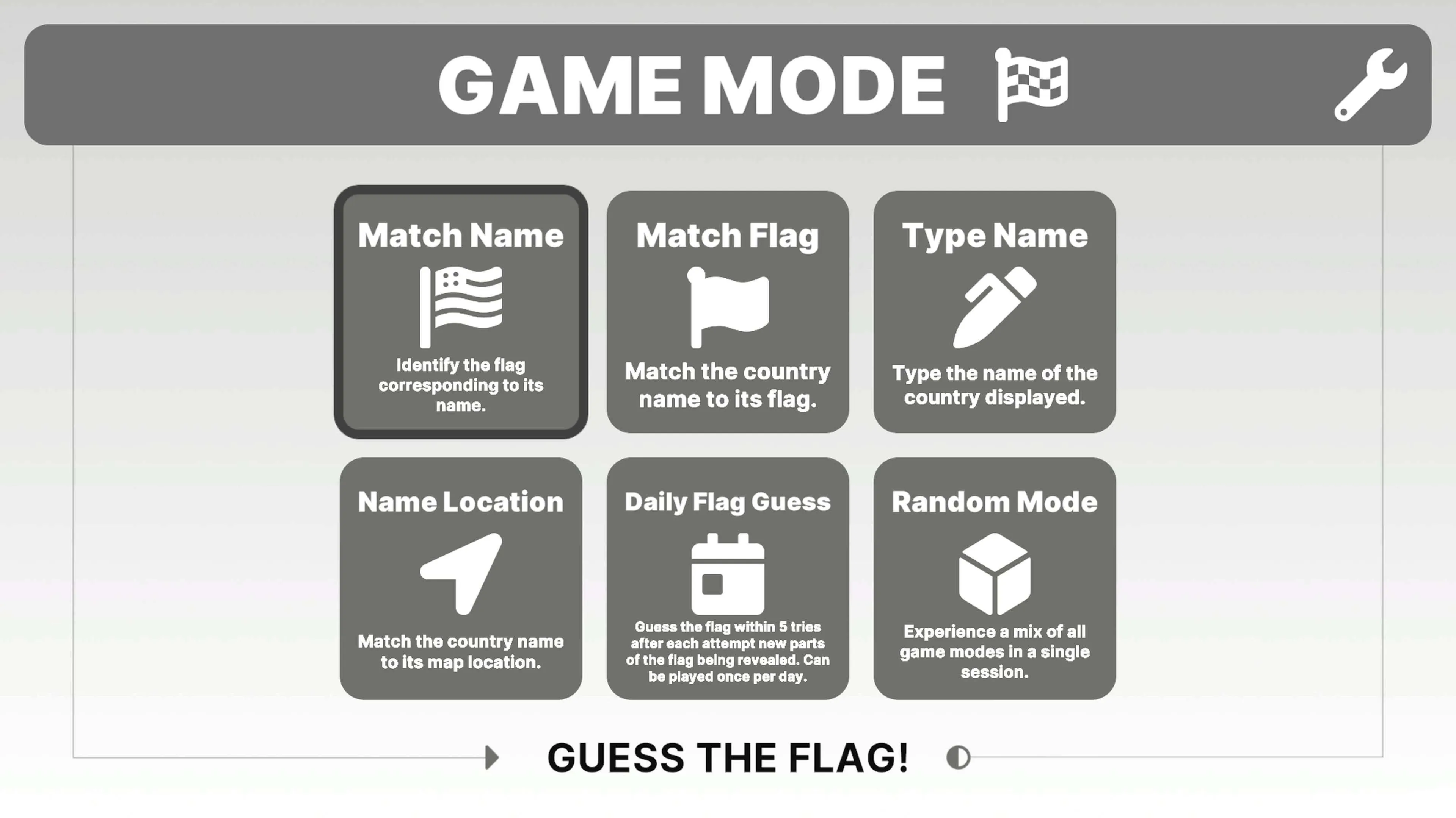 Test your knowledge of 255 countries, islands and international organizations in 6 addictive modes. Test your memory by matching the flag to the name of a country or play the reverse mode. If you are already an expert in flag knowledge, you can try the mode in which you have to write the name of the country yourself. Feel the thrill of matching locations to a country and, for a change, immerse yourself in the unpredictable random mode that combines all the challenges.