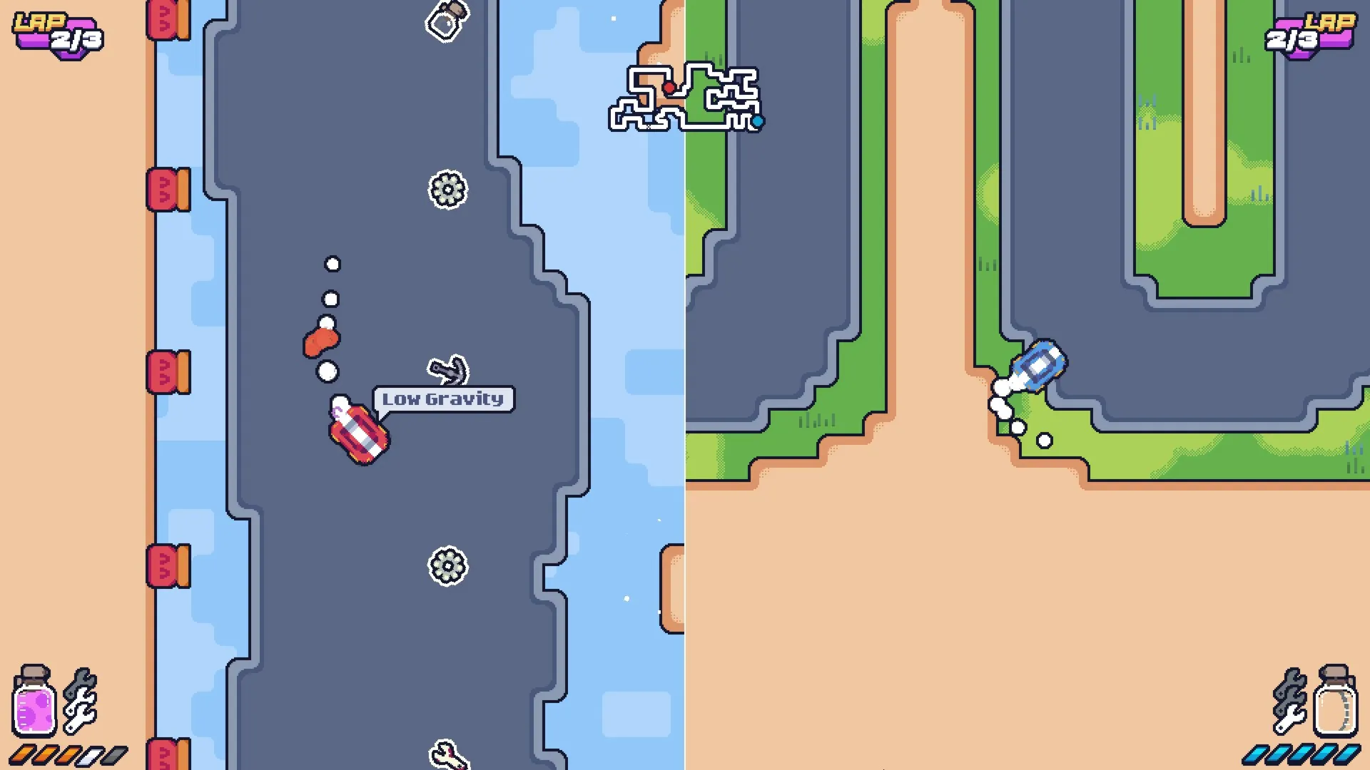 The "Risk & Reward" System Forget standard power-ups. In Gas Ratio, every mystery box is a gamble. Crack one open and you might get a Jump ability to clear gaps or a full Repair. But beware: you might also trigger No Nitro, Low Gravity, or other debuffs that turn your race upside down!
