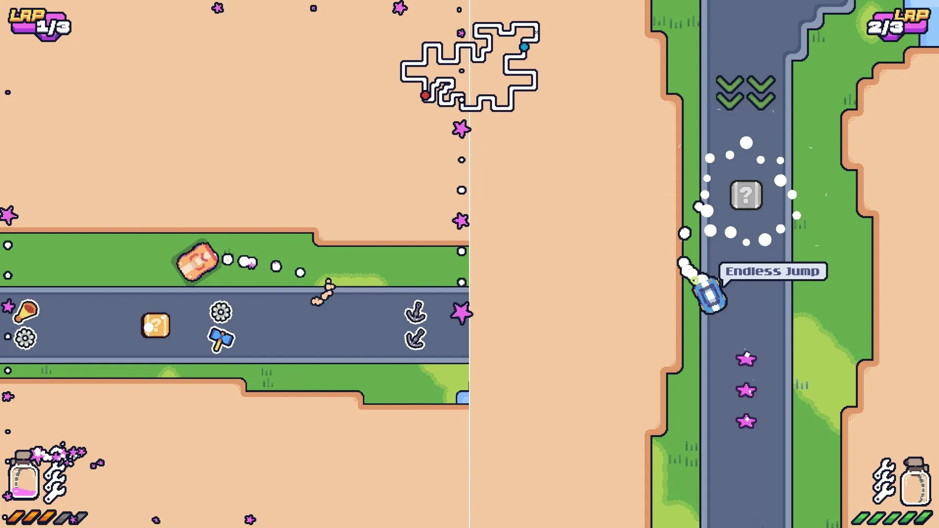 ????️ Retro Arcade Vibes: Classic top-down racing with charming pixel art graphics.