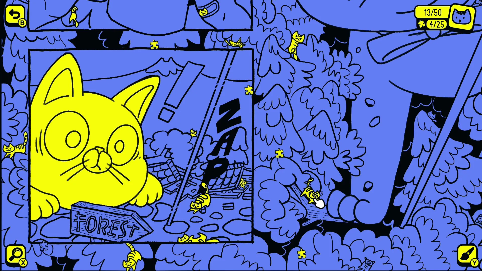 Разглядывайте четыре страницы комикса, находите на них сотни котиков и складывайте умиротворяющие пазлы.