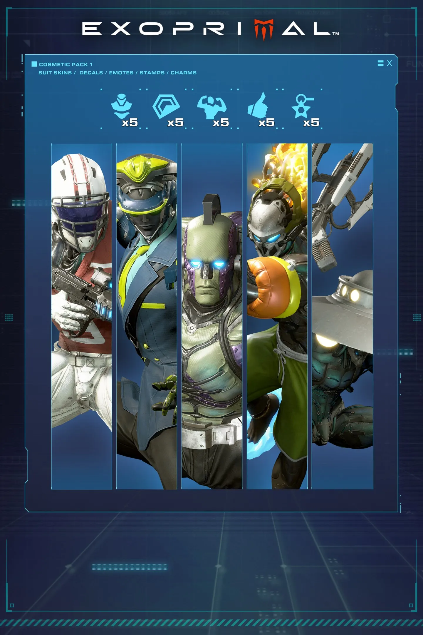 Облики, наклейки и талисманы — это косметические предметы, которые меняют вид экзоскелета, но не дают никаких эффектов.