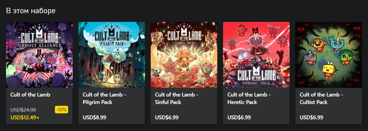 Грешите сколько душе угодно с новым набором Cult of the Lamb - Sinful Pack. Он идеально подойдёт тем, кто хочет купаться в роскоши, достойной королей и королев. Тщеславие считается грехом, но в нём нет ничего плохого!