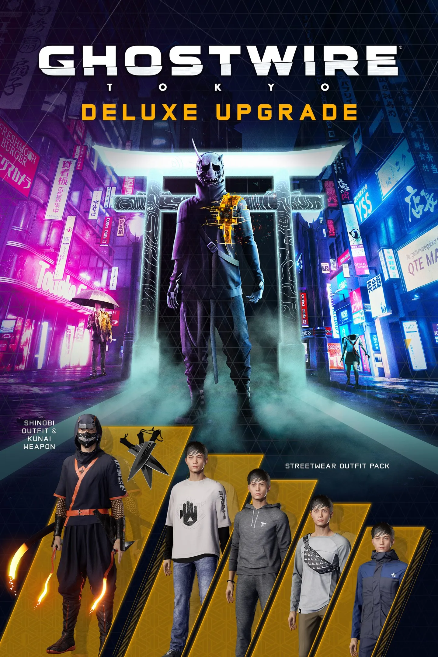 Бросьте вызов неизведанному... стильно. Получите комплект уличной одежды, костюм синоби и боевой кунай с изданием Deluxe для Ghostwire: Tokyo.