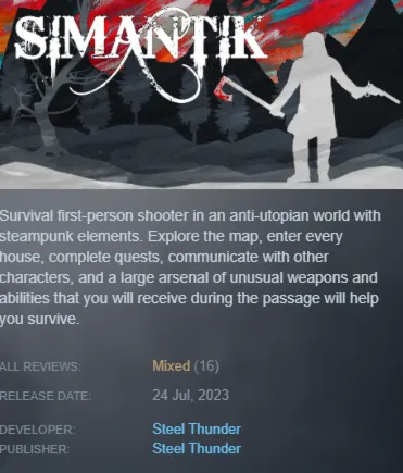 Simantik — это шутер от первого лица на выживание, действие которого разворачивается в антиутопическом мире с элементами стимпанка.