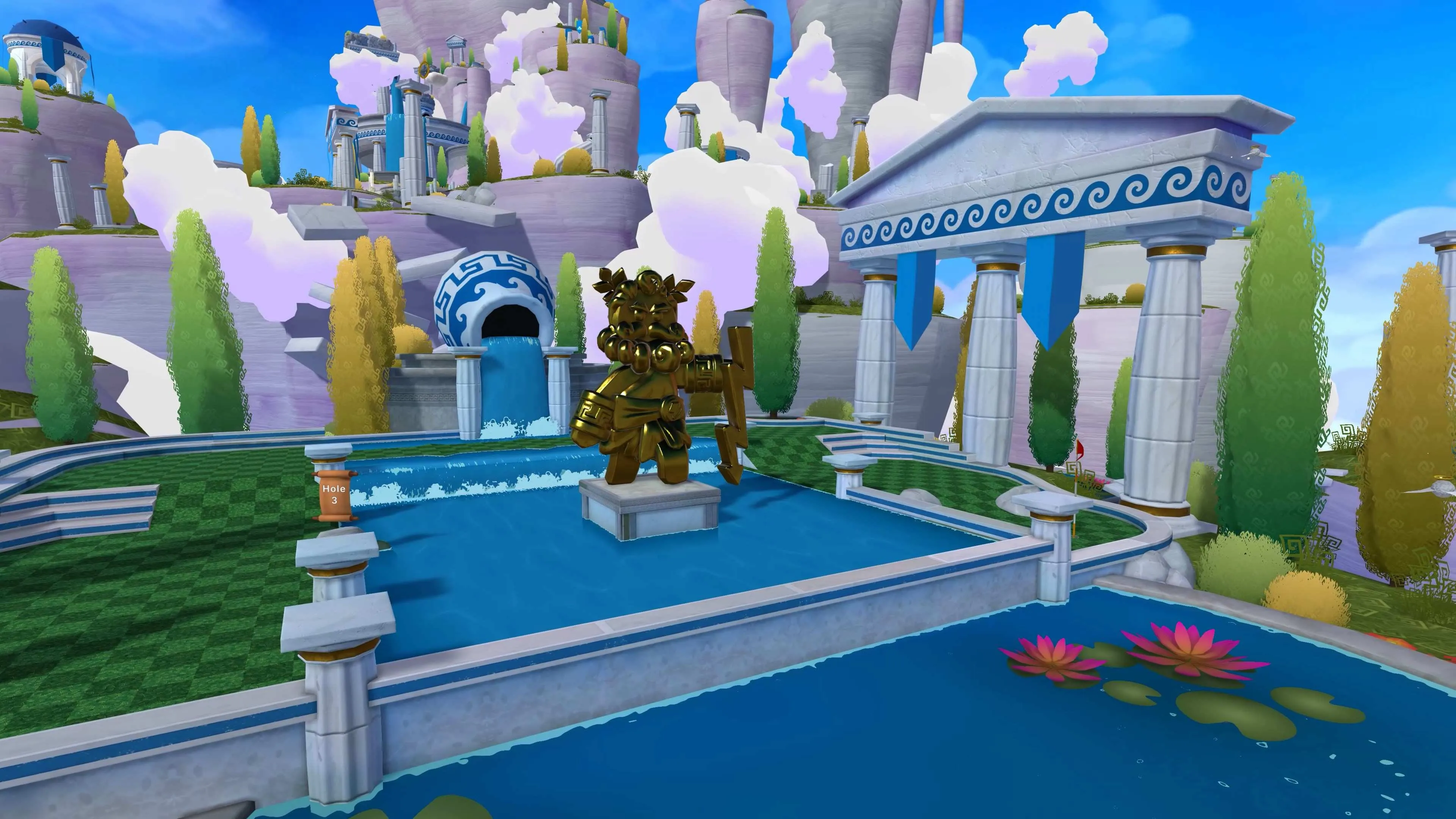 Вас с друзьями приглашают на легендарное поле для мини-гольфа прямо в небе! Олимп — великолепный город с богатой историей, расположенный среди облаков. Его населяет раса джинджи, которая заведует гольфом по всему миру. Восемнадцать волшебных лунок, расположенных на большой высоте, ждут вас уже сейчас!