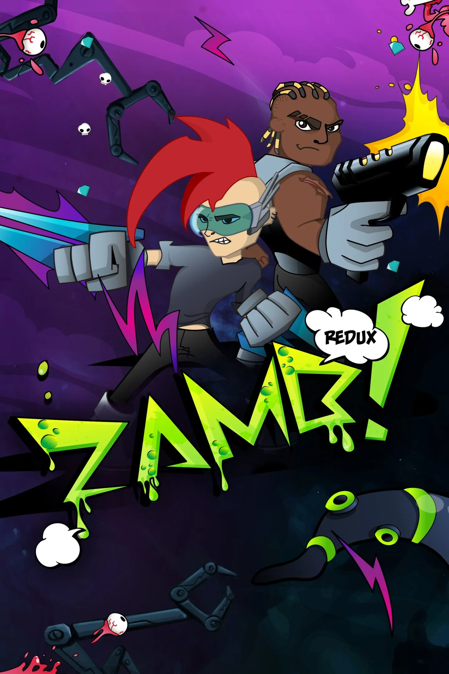 ZAMB! Redux - это смесь жанров twin stick shooter и tower defence. Играйте вдвоем на одном экране за двух космических агентов - Кая (приверженца грубой силы) и Хрома (прирожденного тактика).