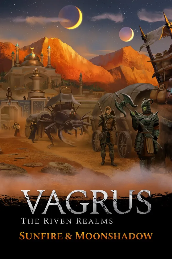Занимая северо-западный угол континента Xeryn, пустыня старше Катастрофы лежит между Бронзовыми горами и рекой Летей: Бронзовая пустыня. Это царство раздирается войной в более чем одном смысле. Империя собирает свои огромные легионы здесь, отправляя их на север к Зеленому континенту, чтобы разрушить его зеленые земли, в то время как элитная Легион Химера остается позади, чтобы наблюдать за этой засушливой базой. Глубоко в пустыне, однако, скрывается другая угроза - это Ахари. Родившись у местного народа Бандула и оттаившихся от их нежелания уступать перед империей, Ахари стремятся вернуть свои священные оазисы и святые места, ведя невозможную кампанию террора. Среди всего этого есть Ханджари, присягнувшие на верность Империи и хранители величайшего города во всей Бронзовой пустыне - Кабур, алмаз Северного края. Сцена задана, ставки высоки. Кто вы, простой бродяга, присоединитесь к себе? Тайные Ахари и их Солнечный Бог или жестокий Легион Химера и их жестоко практичный лидер, Легат? Ваши решения определят судьбу региона в целом, открывая путь к новому, неопределенному будущему во всех Царствах. И все же, дорогой бродяга, как вы достигнете такой земли, отрезанной от внешнего мира разъяренными ветрами и смертоносной географией? Вряд ли вы не понадобится пересечь Царства новым, странным способом, редко используемым другими бродягами. Первое расширение Vagrus, Sunfire и Moonshadow, предлагает новый, огромный регион для исследования, вместе с новыми поселениями, новыми врагами для завоевания, новыми историями для участия, большим составом персонажей и новыми заданиями для завершения, с помощью которых бродяга может оставить свой след на Xeryn. С учетом всего этого, а также введением центрального конфликта, включающего три новых основных фракции - Ахари, Легион Химера и Ханджари - расширение содержит контент примерно на треть размера основной игры.