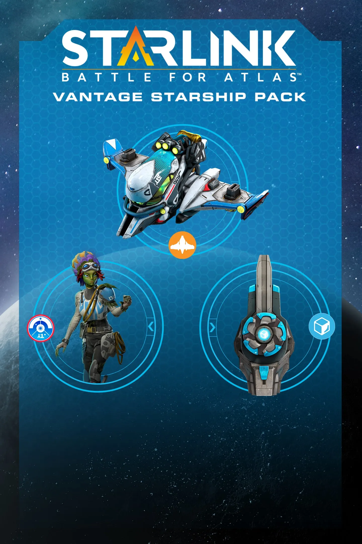 The Starlink: Battle for Atlas™ Digital Vantage Starship Pack* включает в себя: