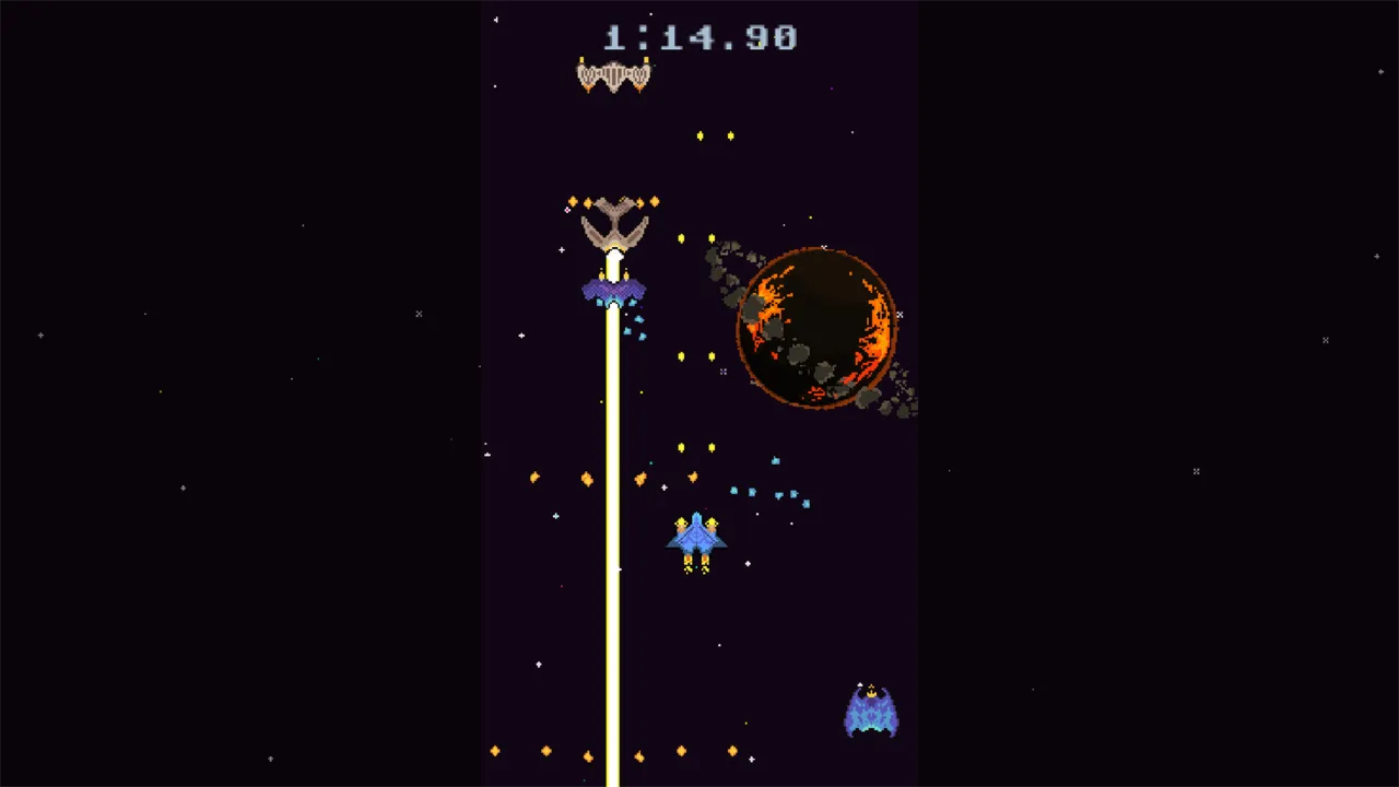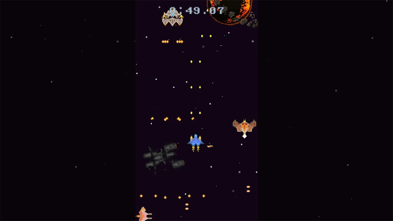 Игра это вертикальный скролл-шутер с множеством противников и плавно возрастающим уровнем сложности.