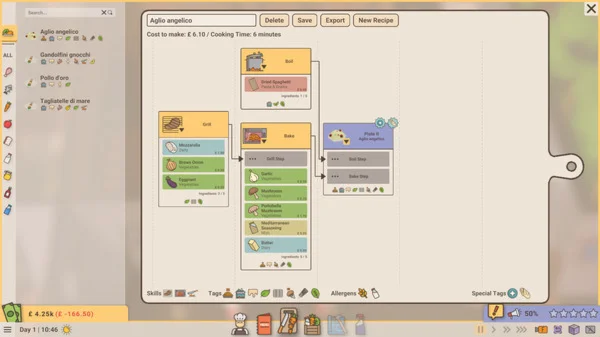 Используйте мощный редактор рецептов, чтобы создавать оригинальные рецепты и добавлять их в меню. Обеспечьте наличие необходимых ингредиентов, следя за уровнем запасов и регулярно делая заказы поставщикам.