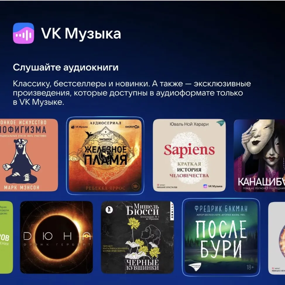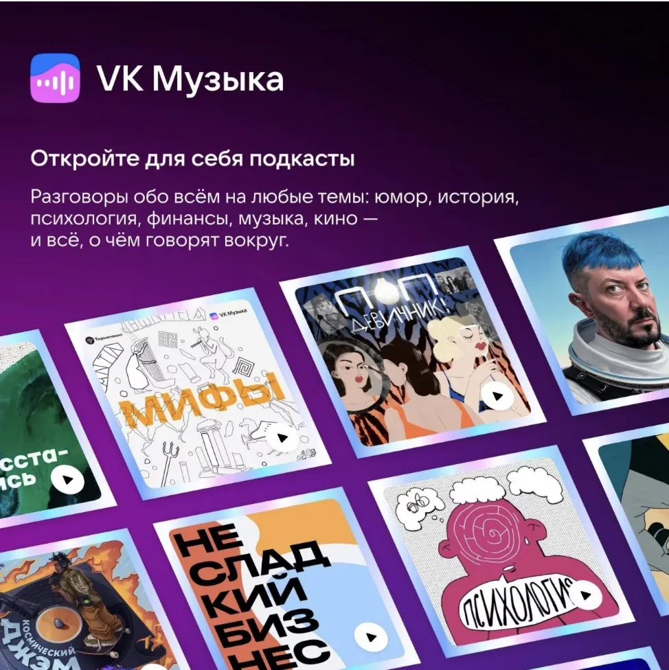 ????VK "Музыка" - это подписка на 12 месяцев, которая дает возможность слушать музыку и подкасты без ограничений на платформе ВКонтакте и в отдельном приложении VK Музыка.