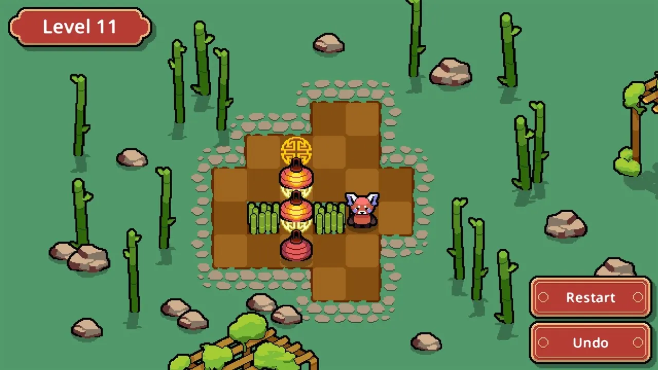 Осветите правильный путь в Lantern Push — очаровательной головоломке, где вы управляете красной пандой, толкающей бумажные фонарики к Магическим Печати Углей на земле. Когда фонарь достигает печати, происходит магия: он загорается, мягко парит в воздухе и отмечает ещё один шаг к идеальному решению.