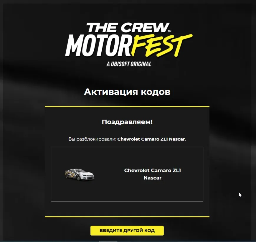 После активации Camaro ZL1 NASCAR появится в игровом инвентаре при следующей загрузке Crew Motorfest.