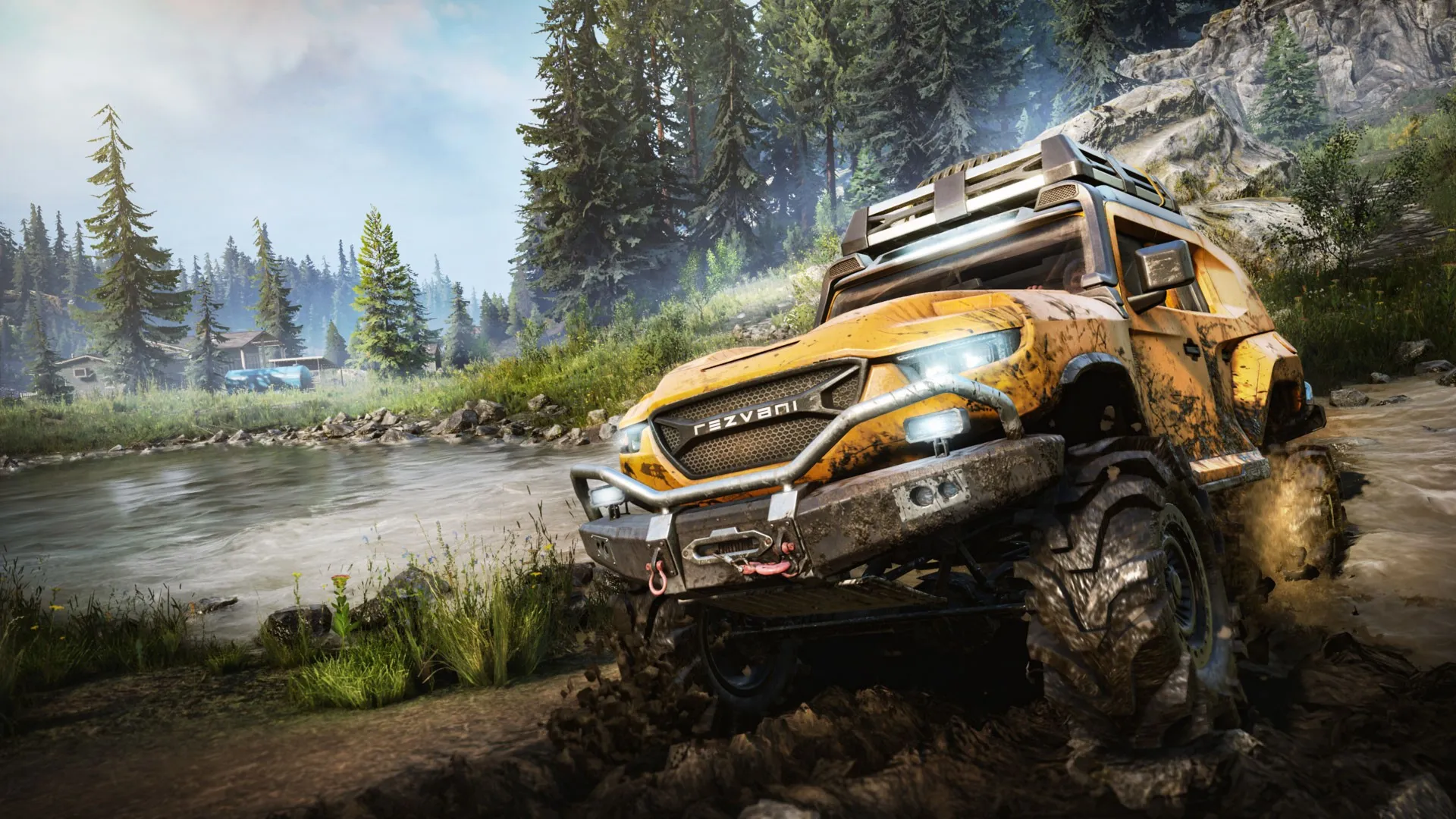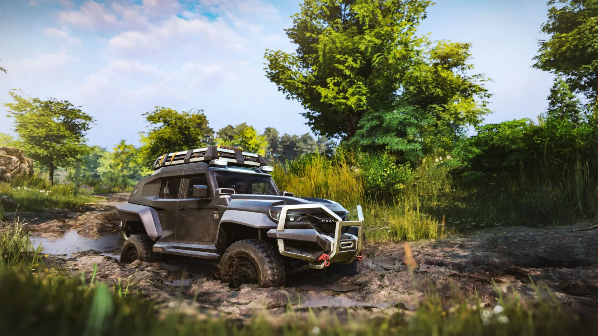 В автопарке SnowRunner очередное пополнение — грозный и мощный разведывательный автомобиль Rezvani Tank!