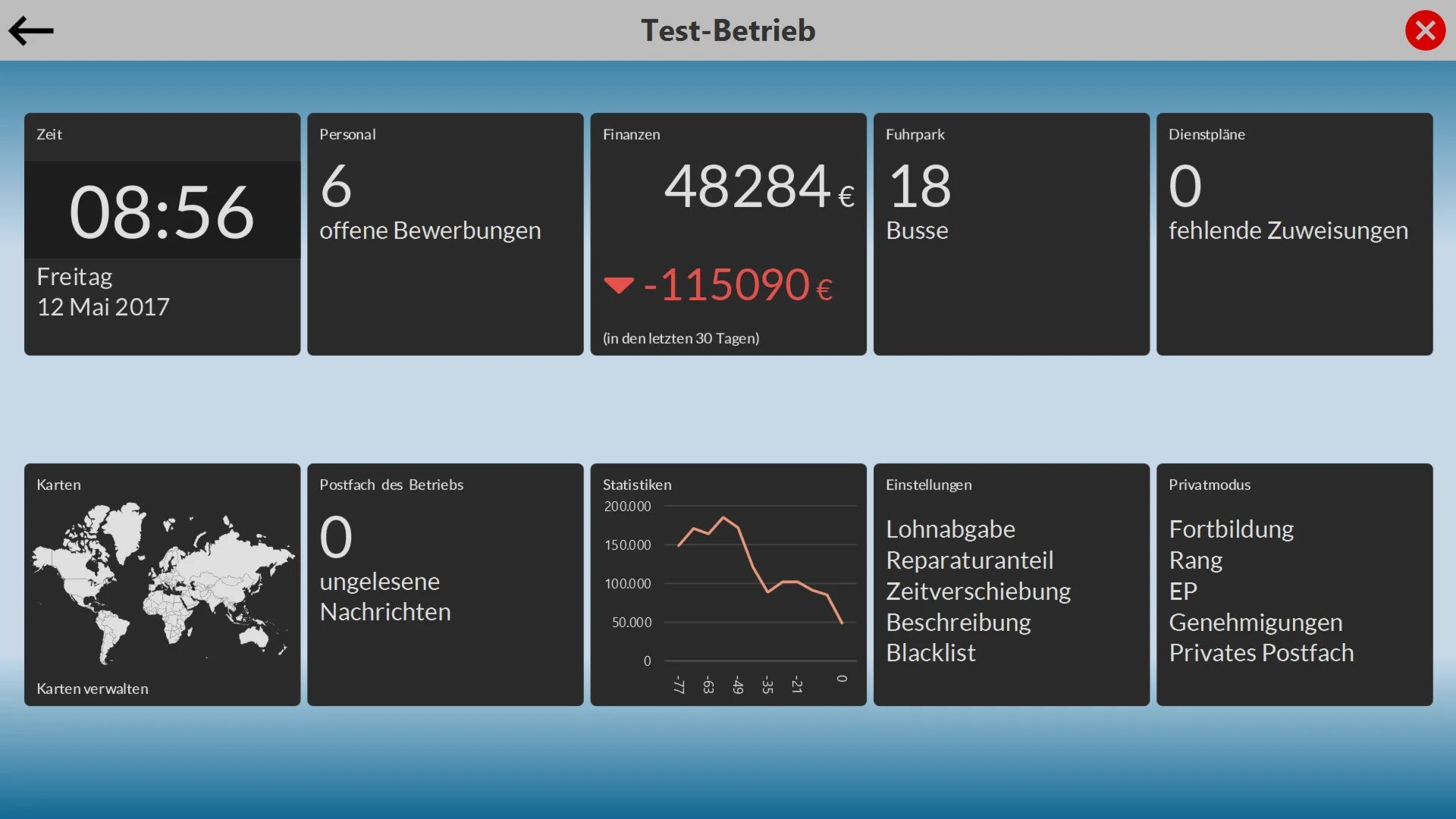 Extensive evaluation after the drive, with direct influence on your rewards, statistics and rankings of the players and companies