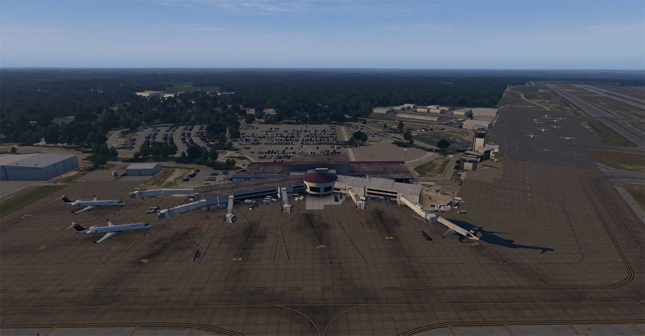 Get the feel of being a regional airline pilot with a visit to Fayetteville Regional Airport! A small town airport located in North Carolina. The airport has two runways and is served by a two-concourse terminal for commercial aviation and one separate terminal for general aviation traffic.
