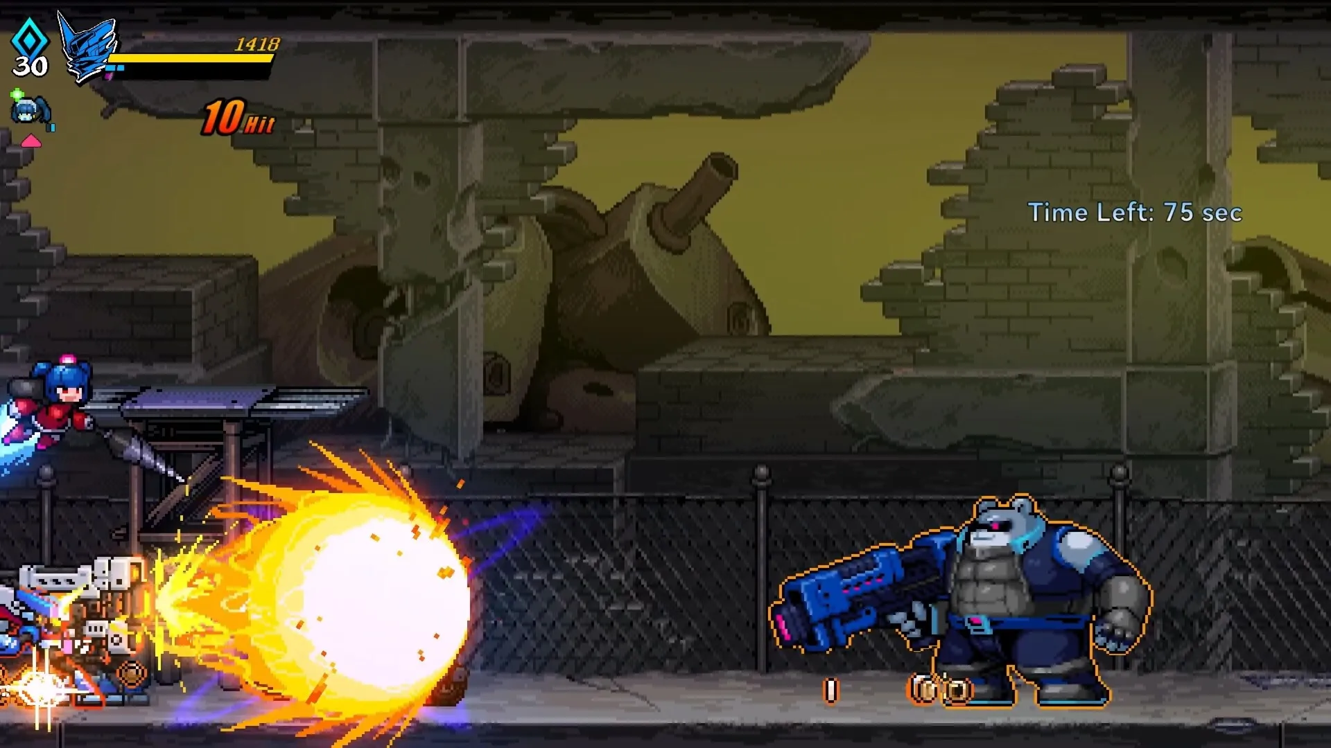Super Alloy Crush is a fast-paced 2D roguelike brawler inspired by classics like Mega Man X. Play as Kelly and Muu (No.02) to defeat enemies and obtain the ultimate cosmic treasure: Planet AE-38. Alone or with a friend in local co-op, get ready for your biggest challenge yet!