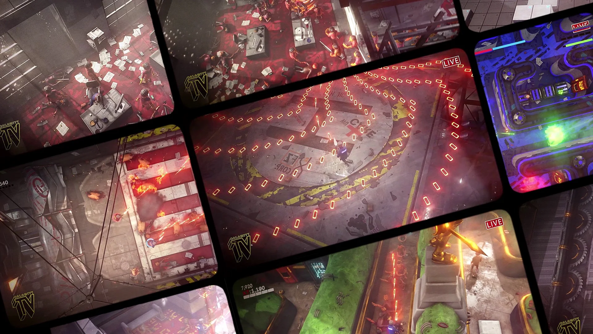 Freakout Calamity TV Show is a juicy TopDownDualStickShooter inspired by old school arcade games and more recent Die Retry shooters