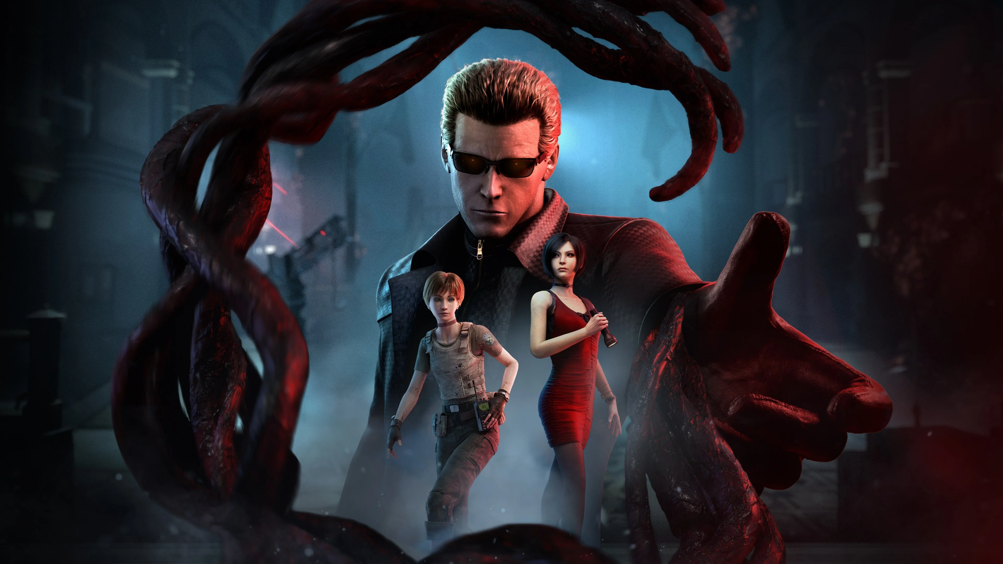 В Dead by Daylight Resident Evil PROJECT W вас ждут новый убийца Кукловод Альберт Вескер и новые выжившие Ада Вонг и Ребекка Чемберс При покупке этого дополнения вы также получите эксклюзивный амулет зеленый флакон