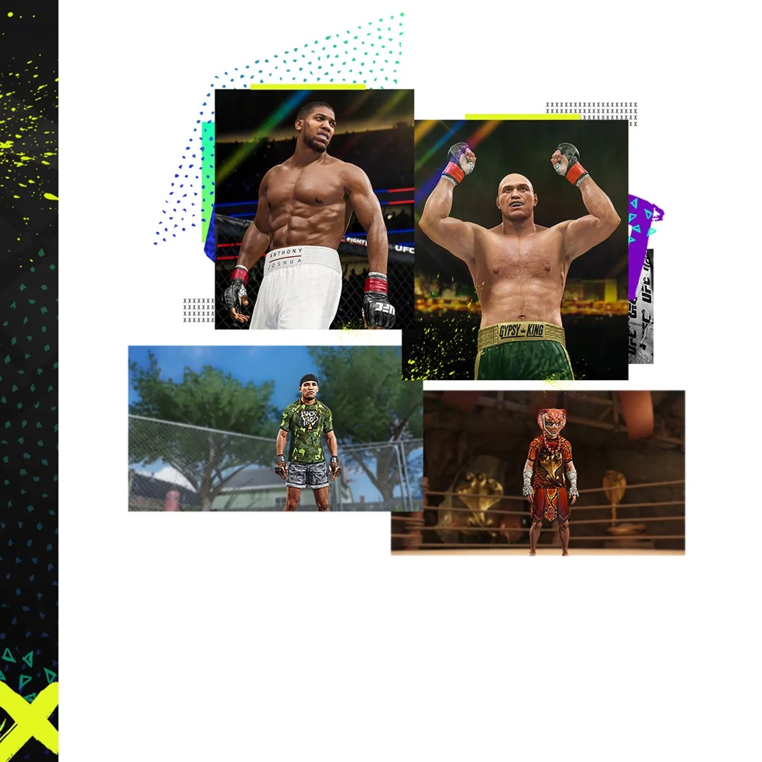 ТРЕБУЮТСЯ ИГРА EA SPORTS UFC 4 НА PLAYSTATION 4 ПРОДАЕТСЯ ОТДЕЛЬНО ВСЕ ОБНОВЛЕНИЯ ИГРЫ ПОДКЛЮЧЕНИЕ К ИНТЕРНЕТУ И УЧЕТНАЯ ЗАПИСЬ EA ТАЙСОН ФЬЮРИ И ЭНТОНИ ДЖОШУА ДОСТУПНЫ ТАКЖЕ В ПРОЦЕССЕ ПРОХОЖДЕНИЯ ИГРЫ И МОГУТ БЫТЬ РАЗБЛОКИРОВАНЫ ЛИШЬ ОДИН РАЗ ОБЪЕКТЫ УЖЕ РАЗБЛОКИРОВАННЫЕ В ПРОЦЕССЕ ПРОХОЖДЕНИЯ ИГРЫ НЕ БУДУТ ВРУЧАТЬСЯ СНОВА