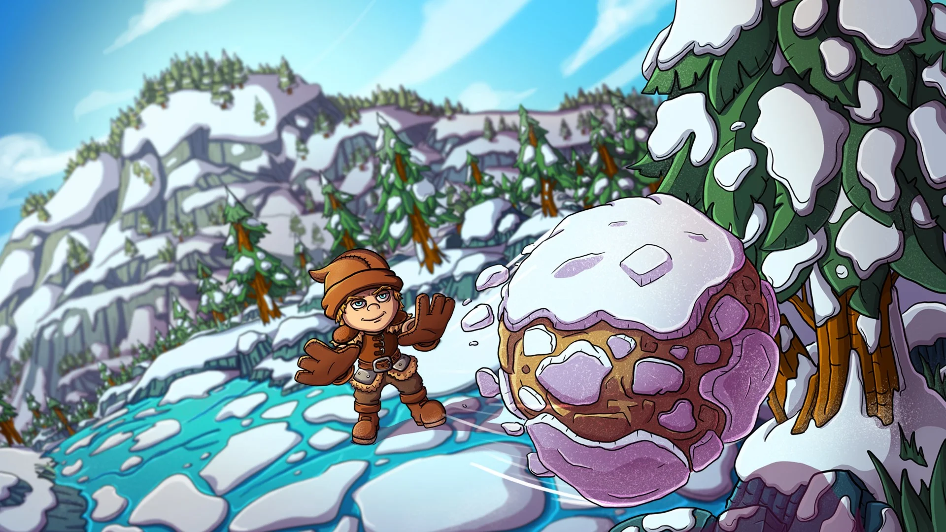 Передвигайте валуны по льду чтобы расчистить путь юному искателю приключений