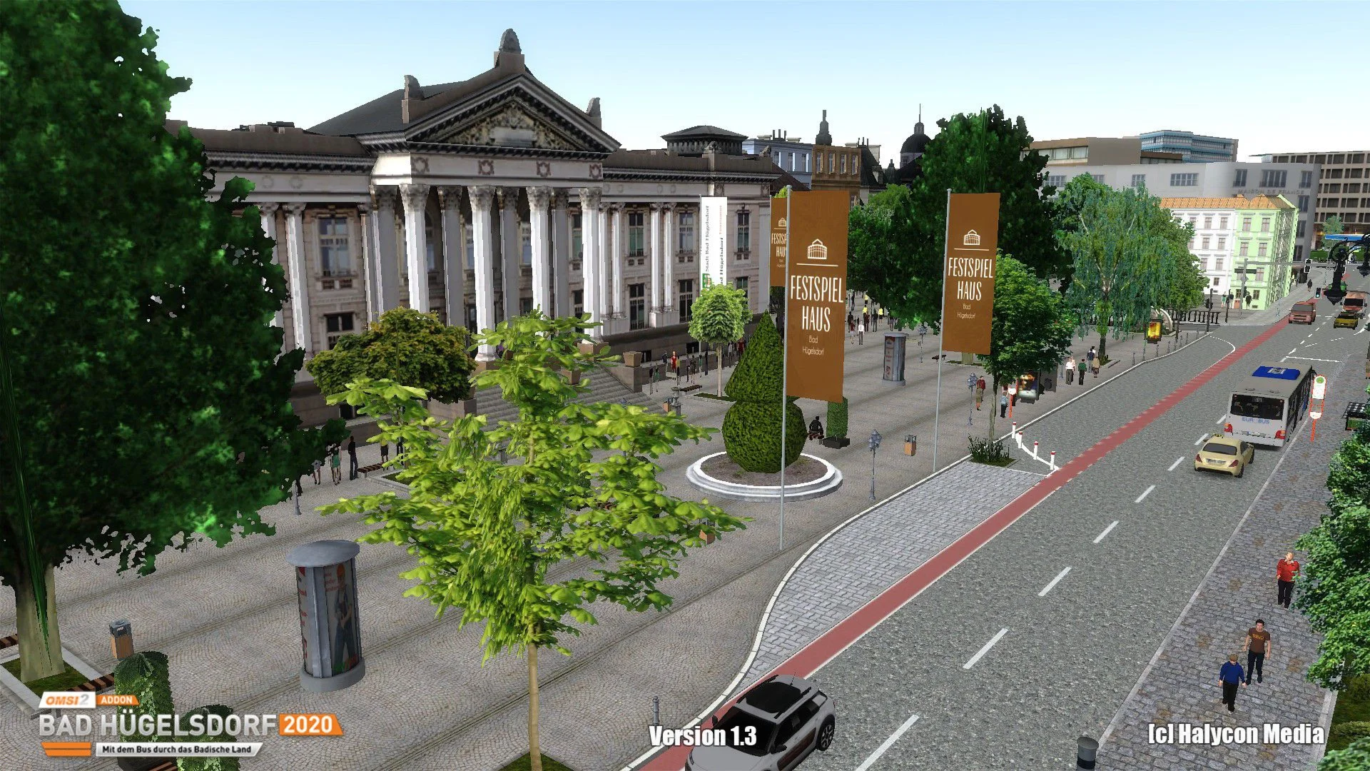 For the OMSI2 AddOn Bad Huegelsdorf 2020 thousands of 3D objects were newly created. Many half-timbered houses typical for the rural area were built. In the city itself, houses from the Wilhelminian period predominate, but also ultra-modern office buildings. In addition, there are residential areas and also commercial areas.