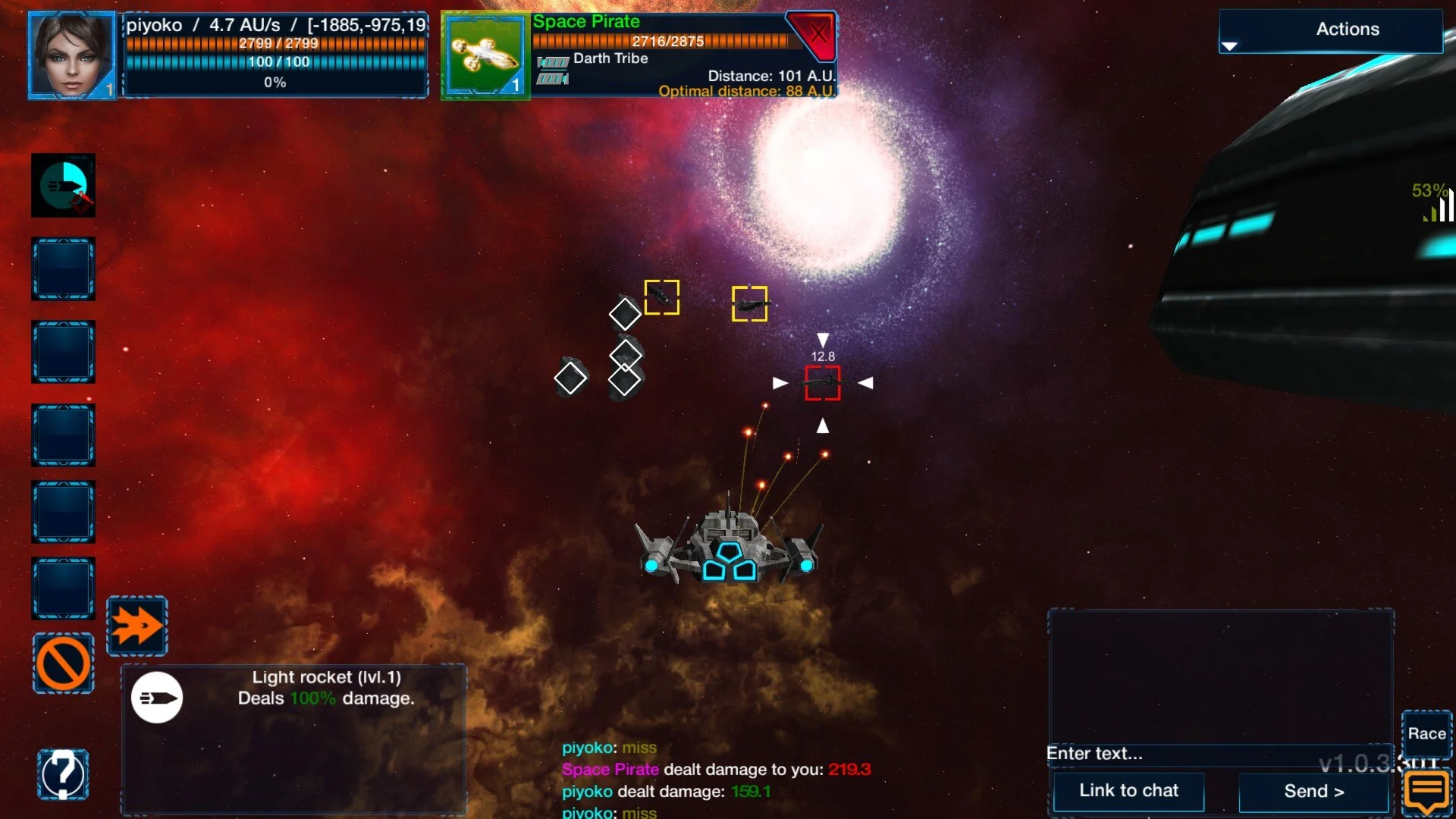 PvP-бои в реальном времени Вы можете заработать PvP-очки уничтожая вражеские корабли других игроков и захватывая звездные системы. В PvP-магазинах, которые имею форму металлических планет или другой структуры, вы можете покупать модули и оружие.