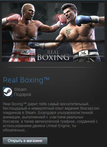 Real Boxing™ дарит тебе самый восхитительный, беспощадный и невероятный опыт ведения боксерских поединков в Steam. Благодаря ультрареалистичной анимации, выполненной с участием реальных боксеров, а также великолепной графике, созданной с использованием движка Unreal Engine, ты обязательно прочувствуешь каждый хук, джеб и апперкот. Тренируй своего полностью настраиваемого боксера и ищи славу в режиме карьеры, или же состязайся с другими игроками в многогранных и полностью отвечающих всем твоим требованиям локальном и сетевом многопользовательских режимах. Независимо от того, используешь ли ты клавиатуру либо контроллер, игровой процесс в Real Boxing так же великолепен, как и внешний вид игры, что даст тебе возможность познакомиться с идеальным опытом ведения боксерских поединков в Steam. Загрузи Real Boxing сегодня!