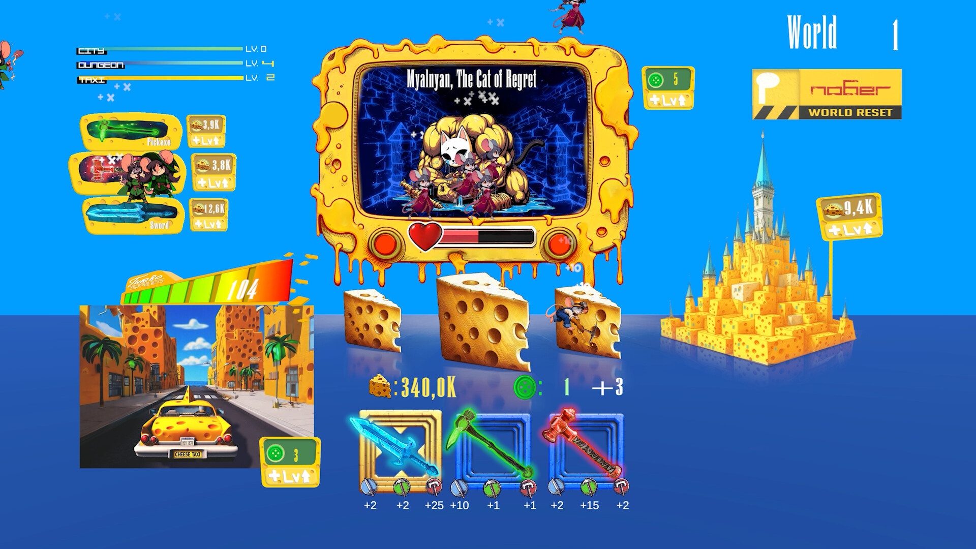 Кликая, вы получаете сыр, который можно тратить на различные улучшения, чтобы еще сильнее улучшить производство.