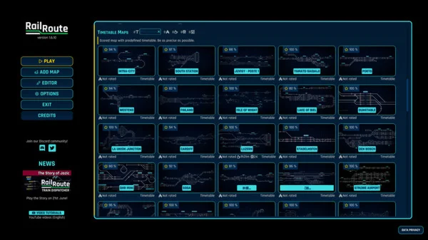В Rail Route вы будете проектировать, строить, модернизировать и автоматизировать свою железнодорожную сеть на картах, основанных на реальных городах мира. Управляйте движением поездов, расширяя и улучшая свою сеть!