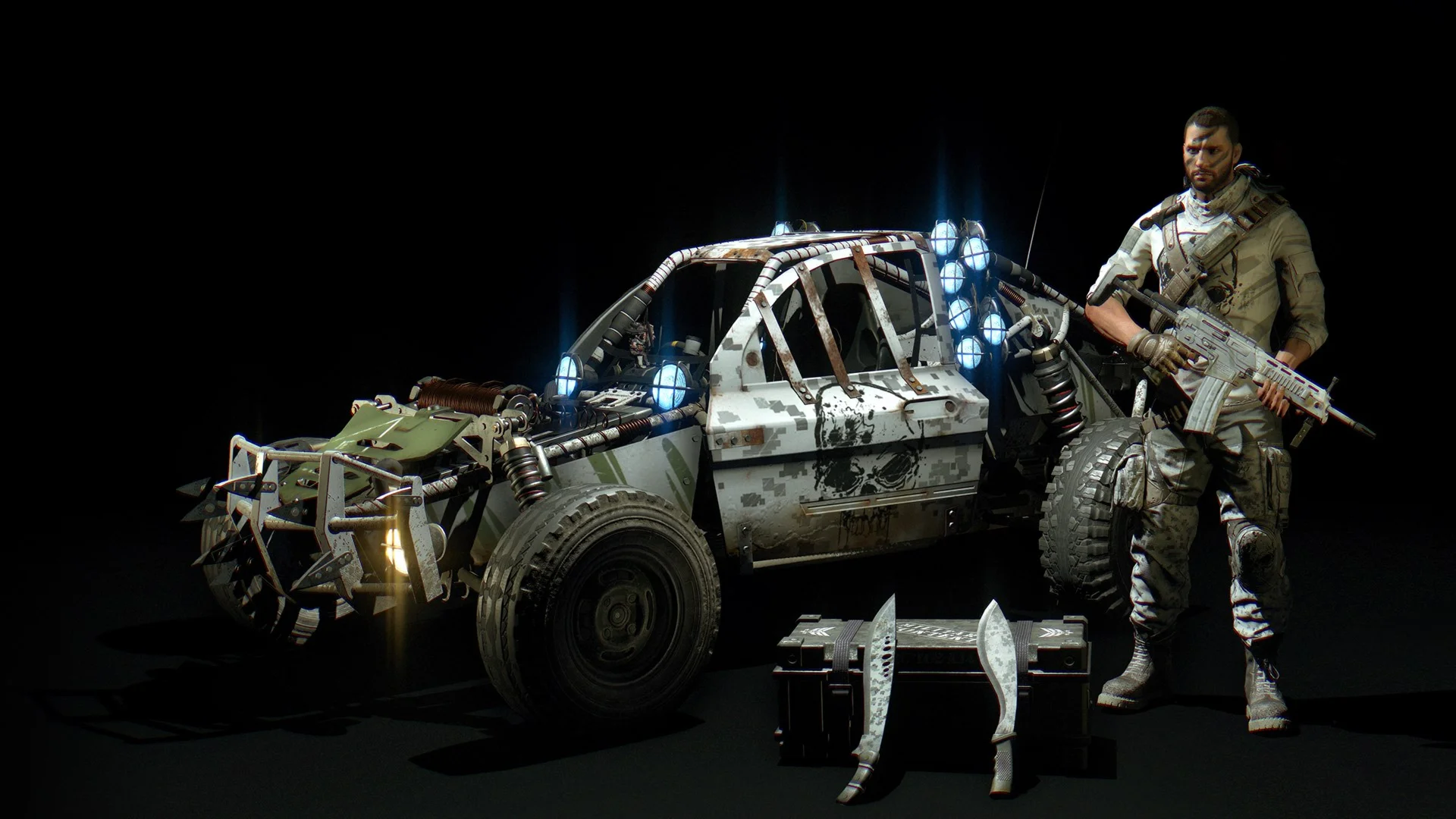 Станьте Белой смертью и заставьте своих врагов дрожать от страха Вселяйте ужас оружием Вьюга Лютый холод и Снежная буря и пугайте всех на своем пути светом фар Черепа смерти В комплект Белая смерть входит новый костюм новая окраска для машины и три чертежа оружия длинного ножа мачете и винтовки Примечание для поддержки этих предметов необходимо дополнение Dying Light The Following