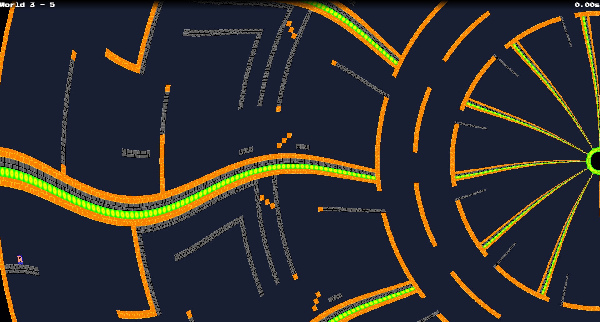 ==================================In a new twist on the retro platformer format, each level is rendered with its own unique effect - distorting the level in unusual ways, offering a unique challenge to players.