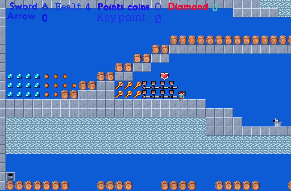 Game functions: move foward and back , jump , use 2 weapons sword and arrow throws.
