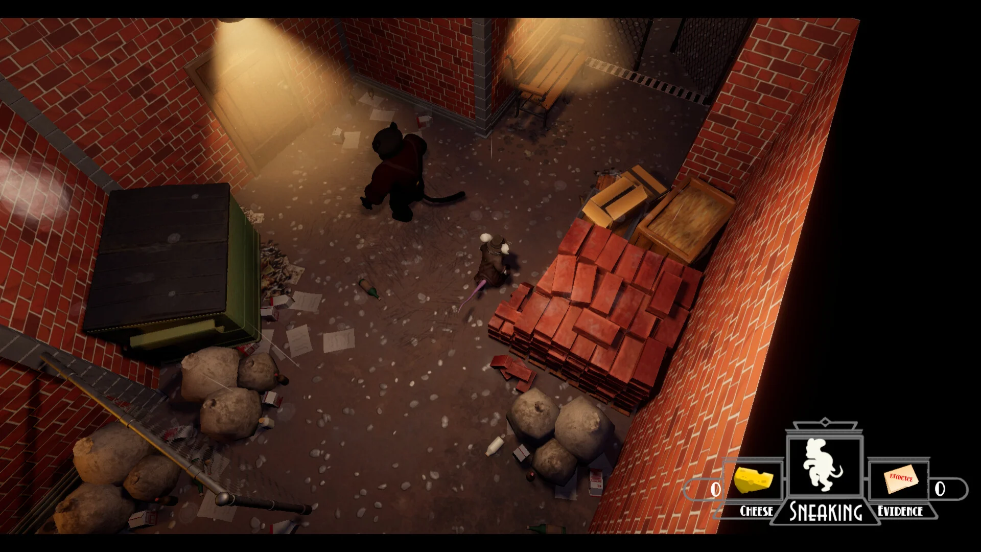 Sneak past guards, follow the cheese, find evidence in this isometric stealth adventure. Play as Brie Parmesan, a master detective and a rat working to undermine the criminal underworld of Chicatgo. Can you find enough evidence to solve case and bring the Cat Meowfia to justice?